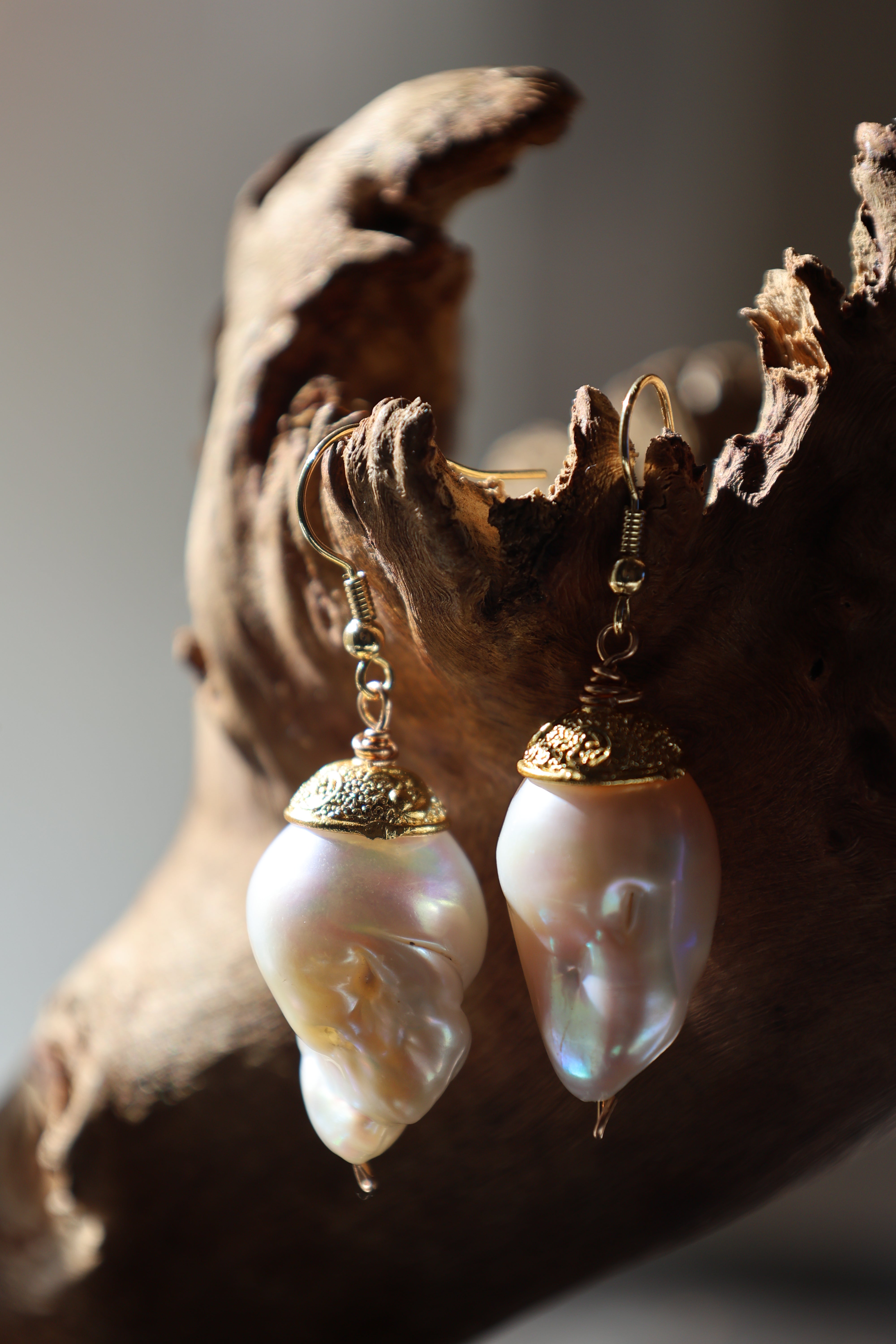 Suspended from delicate hooks, these earrings offer effortless movement and a sculptural presence without feeling heavy. No two pearls are alike in size, shape, or iridescence, making each pair truly one of a kind.