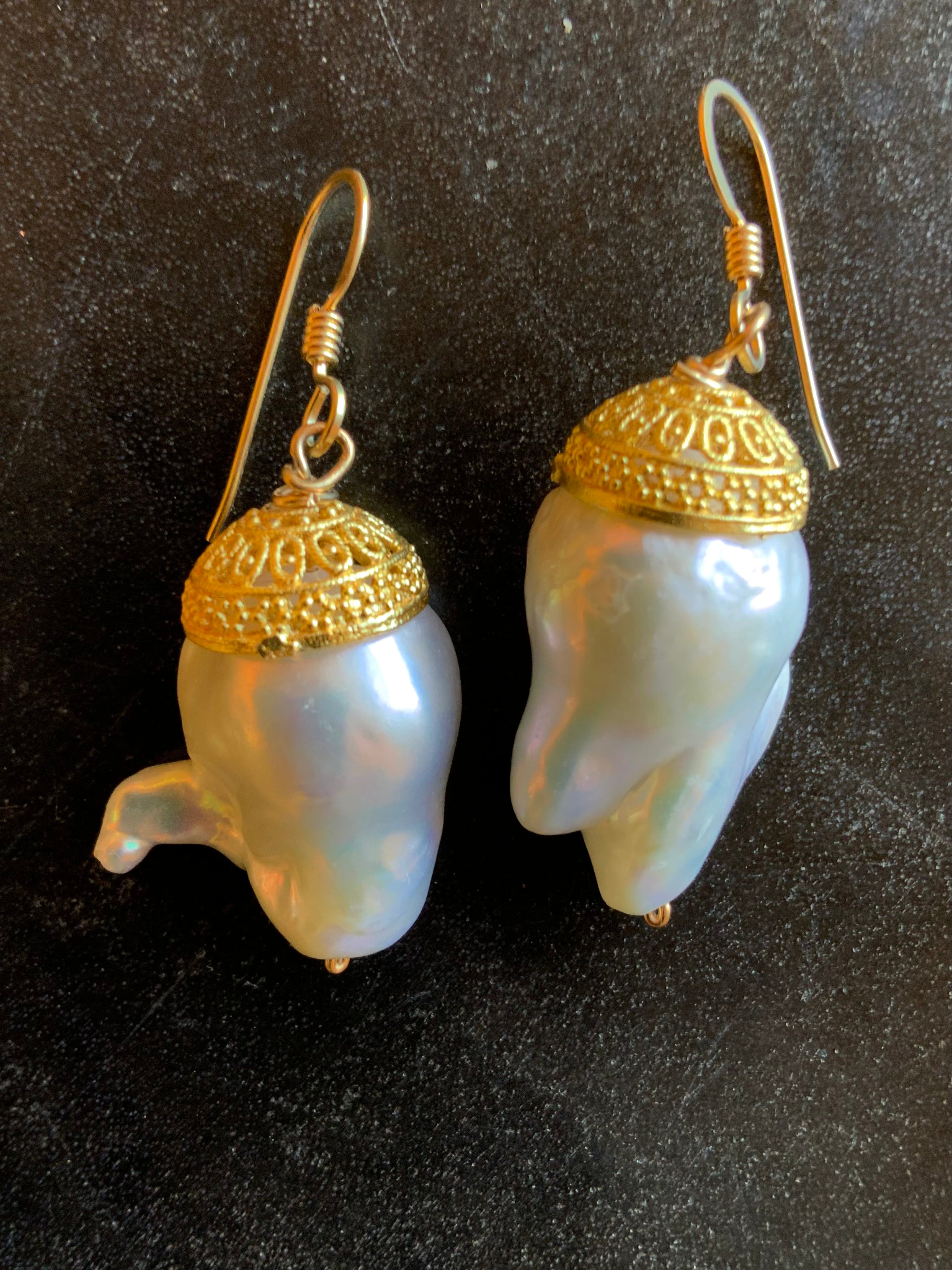 Details:• Natural baroque pearls• Textured gold plated cap • Lightweight drop silhouette• Organic variations in shape and luster